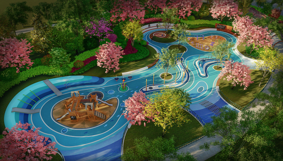 (用彩色健身步道串聯(lián)起兒童樂園和成人健身活動(dòng)區(qū))