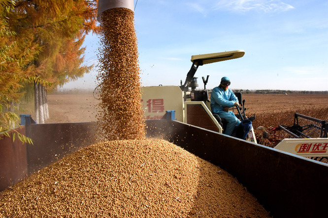 黑龍江省一合作社在收割大豆。(受訪者供圖)