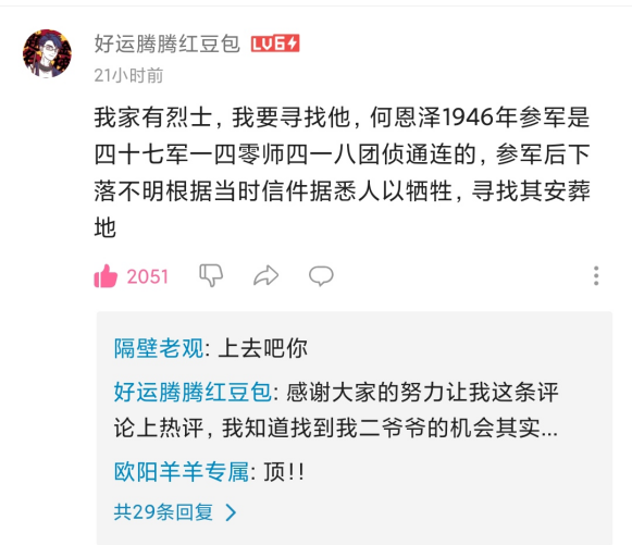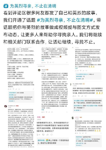 “烈士尋親”的熱潮,在網(wǎng)友們的互動(dòng)中得到強(qiáng)烈體現(xiàn)。