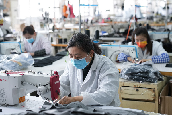 4月16日,在位于合肥廬陽經開區(qū)的合肥清華勝嘉服飾有限公司生產車間,工人們在生產戶外服飾。