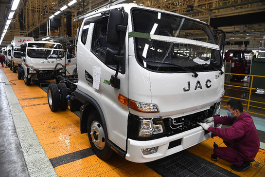 卡車生產(chǎn)線上,一起為復(fù)工復(fù)產(chǎn)打“卡”