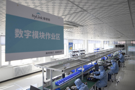 4月24日,在哈爾濱海鄰科信息技術(shù)有限公司生產(chǎn)車間,工作人員在進(jìn)行生產(chǎn)作業(yè)。