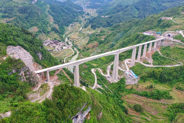這是建設(shè)中的貴南高鐵桐子園雙線特大橋(無(wú)人機(jī)照片)。5月16日,在位于貴州省貴定縣境內(nèi)的貴南高鐵建設(shè)施工現(xiàn)場(chǎng),中鐵廣州局建設(shè)者們正加緊施工,為貴南高鐵早日建成通車而努力。貴南高鐵是我國(guó)“八縱八橫”高速鐵路主通道包頭至??谕ǖ赖闹匾M成部分,設(shè)計(jì)時(shí)速350公里。