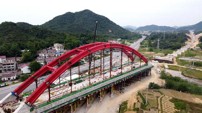 當(dāng)日,由皖贛鐵路安徽公司承建、中鐵十一局施工的池(州)黃(山)鐵路白沙鋪特大橋128米系桿拱順利合龍,為后續(xù)工程施工提供了保障。池黃鐵路全長(zhǎng)約125公里,設(shè)計(jì)時(shí)速350公里,是武(漢)杭(州)快速鐵路通道的重要組成部分。