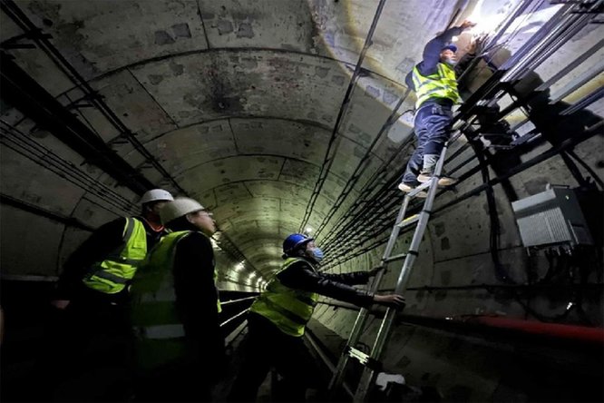 圖為技術(shù)人員夜間進(jìn)入武漢地鐵建設(shè)5G網(wǎng)絡(luò)。許國勝 攝
