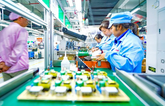川渝合作(達州·大竹)示范園區(qū)內(nèi),工人們在流水線上忙碌著。(黃江濤 攝)