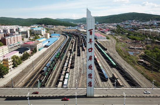 圖為6月8日拍攝的綏芬河站南場,中歐班列從這里出入境。