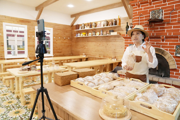 6月9日,在綏芬河一處跨境電商直播基地,電商商家在進(jìn)行直播。