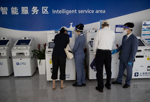 在上海銀行徐匯支行營業(yè)廳,客戶在營業(yè)廳辦理存取款業(yè)務(wù)。新華社記者 金立旺 攝
