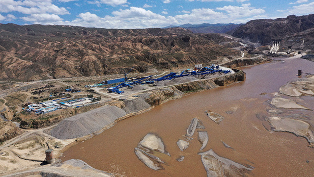 青海:羊曲水電站加緊建設(shè)。這是6月22日拍攝的建設(shè)中的羊曲水電站一角(無人機(jī)照片)。
