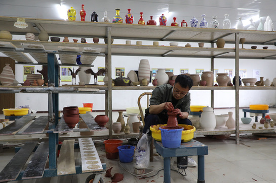 白銀杰就是其中的一位。白銀杰過去以種地為生,是普通農(nóng)民。從小喜歡搞文藝創(chuàng)作的他剪過窗花、寫過春聯(lián)、做過木雕,有一定的技藝基礎(chǔ)。在參加依安縣陶藝培訓(xùn)后,白銀杰成為當(dāng)?shù)匦∮忻麣獾摹疤账噹煛??!懊總€(gè)月能有5000多元的收入,比種地強(qiáng)多了。”白銀杰說。