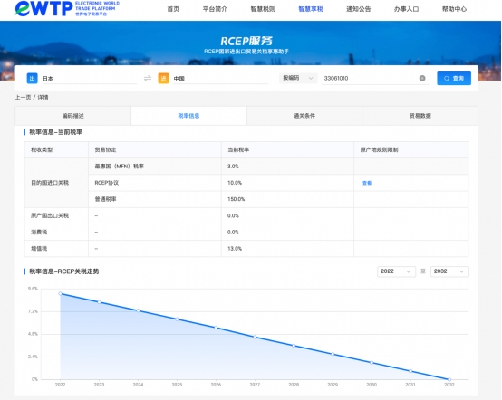 據(jù)了解到,屆時(shí),企業(yè)只需要登陸eWTP官網(wǎng),通過(guò)“智慧享稅”欄目即可查詢輸入原產(chǎn)地、出口國(guó)和出口商品的HS編碼,就會(huì)顯示RCEP和其他貿(mào)易協(xié)定對(duì)于該商品的稅率規(guī)定,系統(tǒng)將會(huì)推薦最優(yōu)惠稅率;企業(yè)還可查詢相關(guān)原產(chǎn)地規(guī)則,便于企業(yè)了解協(xié)定享惠要求。