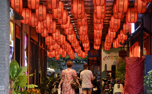 市民在東城區(qū)簋街游覽(7月6日攝)。