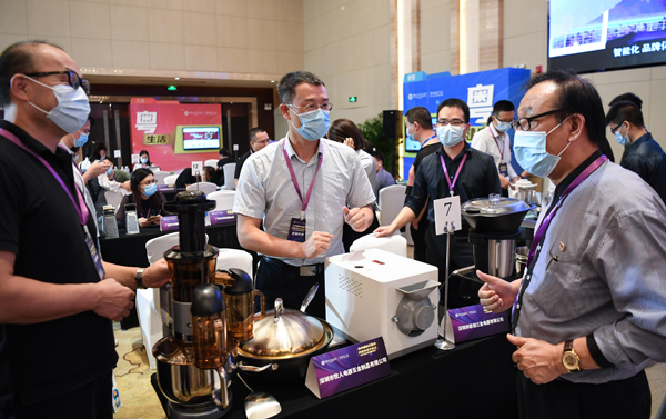 在網(wǎng)上廣交會(huì)的線下雙循環(huán)貿(mào)易促進(jìn)活動(dòng)上,企業(yè)代表和采購(gòu)代表洽談業(yè)務(wù)(資料照片)
