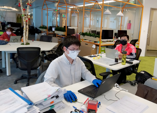 在廣州國(guó)際金融中心大樓里,某跨國(guó)公司員工在工作。(資料照片)