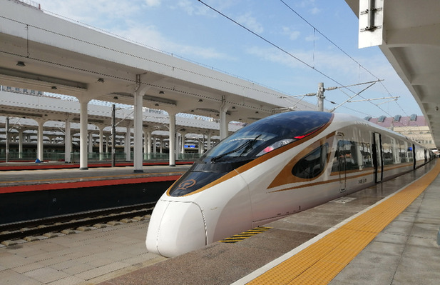 復(fù)興號(hào)高寒動(dòng)車組在牡丹江站等待發(fā)出。資料照片