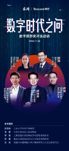 2022年,澎湃新聞與騰訊公司共同成立澎湃-數(shù)字原野研究工作室。7月26日,澎湃-數(shù)字原野研究工作室宣布設立“數(shù)字原野獎”。作為全國首個由主流新媒體與科技企業(yè)聯(lián)合發(fā)起的跨學科數(shù)字中國研究獎項,“數(shù)字原野獎”將從多學科、多角度、多領域關注數(shù)字化轉型期的社會交往,觀察因數(shù)字而變的經(jīng)濟關系,注重理論研究與社會生產結合,鼓勵社會各界共同研究數(shù)字中國,提問數(shù)字中國、求解數(shù)字中國。