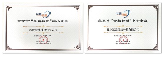 ▲ 專(zhuān)精特新證書(shū)-遠(yuǎn)盟康健集團(tuán)(左)北京遠(yuǎn)盟健康(右)