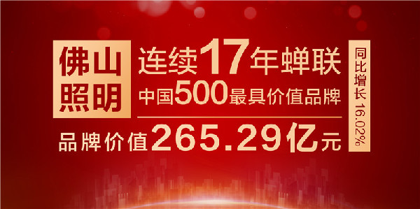 聚合品牌力量,提升品牌價值,再次入選“中國500最具價值品牌”榜單,是佛山照明品牌提升的又一階段性成果,佛山照明將以這份榮譽為前進動力,在新的征程上不斷創(chuàng)造新的業(yè)績、鑄就新的輝煌,為推動新時代中國品牌建設作出貢獻。