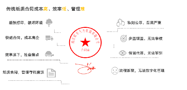 當(dāng)下,數(shù)字化時(shí)代,對(duì)于企業(yè)的人力資源部門來說,每天需要重復(fù)處理大量的合同、文件等材料,加上企業(yè)人員的流動(dòng)性大,一部分求職者的身份核實(shí)難,異地合同簽署不便,合同倉儲(chǔ)管理繁瑣,查閱不便以及印章也容易發(fā)生被盜風(fēng)險(xiǎn)等,一系列的問題導(dǎo)致人力資源部門的效率底下,成本卻不斷的在增加。