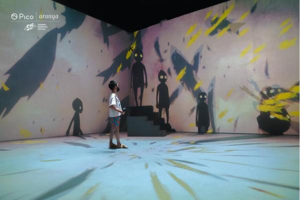SIF 2022的32部展演作品涵蓋來自威尼斯、戛納、翠貝卡等國際電影節(jié)的VR/AR獲獎佳作,例如《掌聲(Clap)》以新穎的形式讓觀眾與VR中的角色進行互動,串聯(lián)起了虛擬與真實世界;《紅螞蟻(RedAntz)》以互動MV的形式帶領觀眾進入一個Palberta曲風的迷幻異域世界。這些作品一改往年集中的呈現(xiàn)方式,沿阿那亞近一公里海岸線分布散開設立多個活動區(qū)域。不僅有800+平方米的主活動區(qū)、穿插裝置化作品,更有精彩的水下VR體驗以及在孤獨圖書館設立的特殊體驗區(qū)。