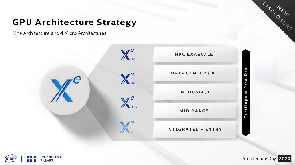 為此,Intel設(shè)計了全新的Xe GPU架構(gòu),并細(xì)分為主打集成顯卡和入門獨顯的超低功耗Xe LP、針對游戲優(yōu)化的高性能圖形Xe LPG、面向數(shù)據(jù)中心和AI應(yīng)用的高性能Xe HP、適合超級計算的高性能計算Xe HPC四種微架構(gòu),