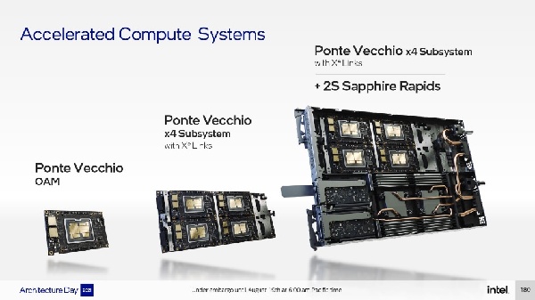 Xe HPC架構(gòu),首款產(chǎn)品代號Ponte Vecchio,多工藝多芯片整合封裝,已經(jīng)出貨,將與下一代可擴(kuò)展至強(qiáng)Sapphire Rapids聯(lián)手用于百億億次級超級計算機(jī)Aurora。