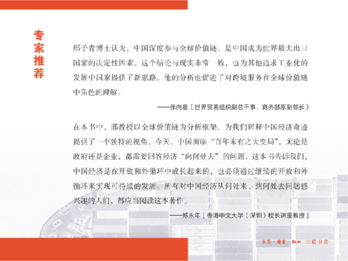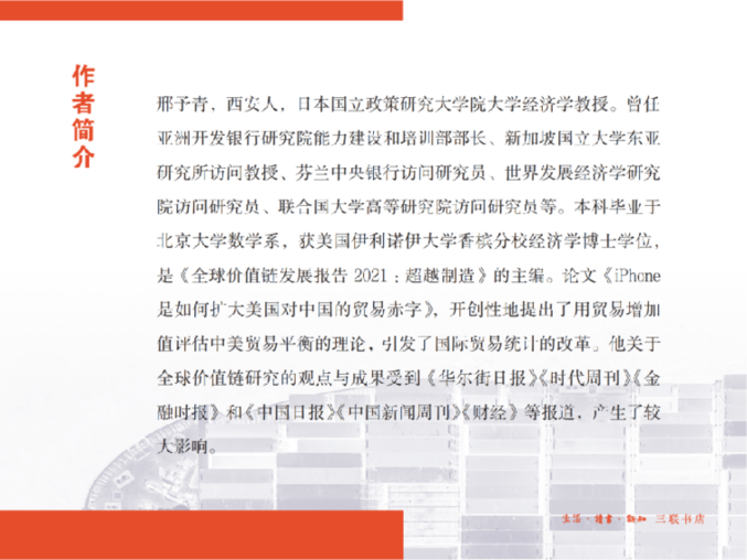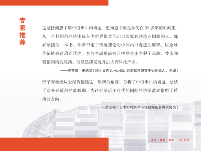 該書作者邢予青是日本國(guó)立政策研究大學(xué)院大學(xué)經(jīng)濟(jì)學(xué)教授,研究全球價(jià)值鏈?zhǔn)嗄?。不同于李嘉圖的比較優(yōu)勢(shì)理論、赫克歇爾-奧林模型或者保羅·克魯格曼教授提出的基于規(guī)模經(jīng)濟(jì)的新貿(mào)易理論,該書第一次以全球價(jià)值鏈為框架,從中國(guó)企業(yè)在全球價(jià)值鏈中扮演的角色出發(fā),揭示了跨國(guó)公司的技術(shù)、品牌和市場(chǎng)營(yíng)銷網(wǎng)絡(luò)對(duì)中國(guó)出口奇跡形成的決定性作用,闡述了全球價(jià)值鏈如何推動(dòng)中國(guó)出口快速增長(zhǎng)的機(jī)制。