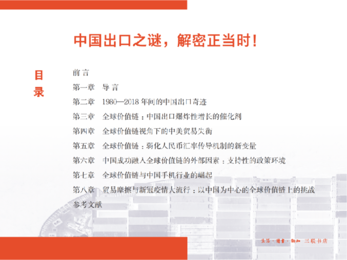 中國(guó)為什么只用30年左右的時(shí)間成為世界第一大出口國(guó)?中國(guó)出口為什么在全球地緣沖突和新冠疫情沖擊下依舊強(qiáng)勁增長(zhǎng)?近日,由生活·讀書·新知三聯(lián)書店出版的《中國(guó)出口之謎:解碼“全球價(jià)值鏈”》對(duì)此進(jìn)行了一一解答,全面、深刻地解析了中國(guó)出口奇跡。該書上市一周已位列當(dāng)當(dāng)經(jīng)濟(jì)類新書第一名、京東社科類新書總榜第七名。