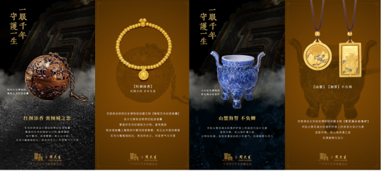 隨著民族文化自信高揚,東方美學消費力量不斷崛起,從故宮到敦煌,以中國傳統(tǒng)文化為核心的“國潮”在品牌營銷領域展示著迷人風采,這意味著“文創(chuàng)IP的國潮時尚”已蔚然成風。在此形勢下,周大生與《國家寶藏》強強聯(lián)合,重磅打造“中國國寶藝術典藏金品”,并根據(jù)消費者對黃金首飾消費的個性化需求,以一曰“國”、二曰“家”、三曰“藏”為情景風格設定,打造“國韻”、“家慶”以及“藏器”三大系列主題的時尚古法黃金產品,通過現(xiàn)代珠寶藝術讓國人更好的“傾聽和讀懂”千年的國寶文化,同時也為新一代消費者提供更多富有旗幟性文化標識和情感內涵的時尚潮搭首飾。