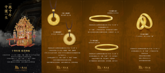 據(jù)中國黃金協(xié)會統(tǒng)計,2021年全國黃金實際消費量1120.90噸,其中黃金首飾的銷售量高達711.29噸,較2020年同比增長44.99%,可見,黃金首飾已是我國黃金市場的主力需求,而在此次調研中,還發(fā)現(xiàn)消費者購買黃金首飾的需求中自我剛需和婚嫁禮贈的占比最大?;诖粟厔?,周大生珠寶與《國家寶藏》將“家慶”系列立意于“頌古傳今,慶一家之喜慶”,博采國寶文化精粹,將烙印在國人心中的千年國寶“三星堆之縱目面具”、“葡萄花鳥紋銀香囊”、“清華海水紋香爐”、“寧波萬工轎”以及“金甌永固杯”等中汲取典型的元素與符號,并采用現(xiàn)代古法工藝和國潮時尚設計融合再創(chuàng),演繹新時代下的潮金藝術,讓悠久的祝福富有了新時代的情感內涵。