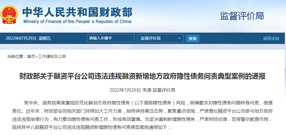 融資平臺公司違法違規(guī)融資財政部公開通報問責(zé)典型案例