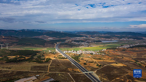 這是2021年通車的云南三清高速一景(2022年1月15日攝,無人機照片)。新華社記者 胡超 攝