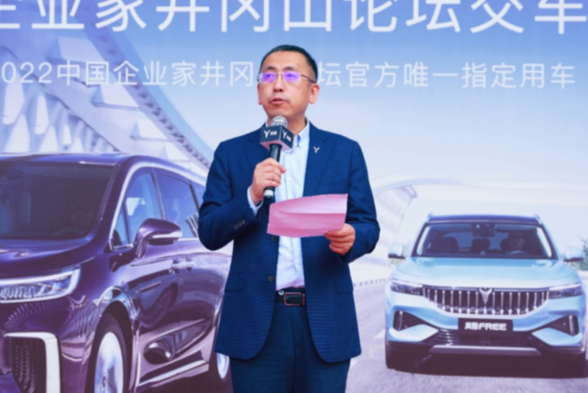??圖片二:2022中國企業(yè)家井岡山論壇唯一指定用車交車儀式現(xiàn)場(chǎng),嵐圖汽車科技有限公司CEO盧放致辭