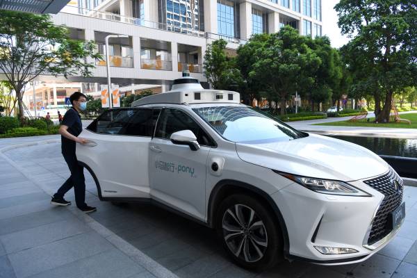 8月1日,在深圳前海,一名乘客體驗乘坐小馬智行自動駕駛汽車。新華社記者 梁旭 攝