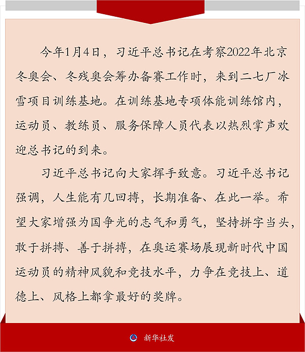 習近平總書記向大家揮手致意。習近平總書記強調,人生能有幾回搏,長期準備、在此一舉。希望大家增強為國爭光的志氣和勇氣,堅持拼字當頭,敢于拼搏、善于拼搏,在奧運賽場展現(xiàn)新時代中國運動員的精神風貌和競技水平,力爭在競技上、道德上、風格上都拿最好的獎牌。