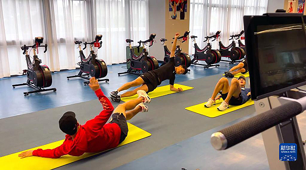 登上自行車訓練器,任子威開始熱身,“練了一個多月了,瘦了一些,感覺‘脫了一層皮’,更精神了”。