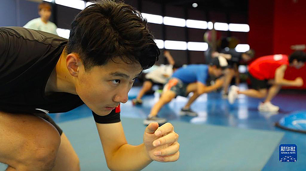 任子威在國家體育總局冬季運動管理中心綜合訓練館進行訓練(2022年8月9日攝)。新華社記者 趙建通 攝