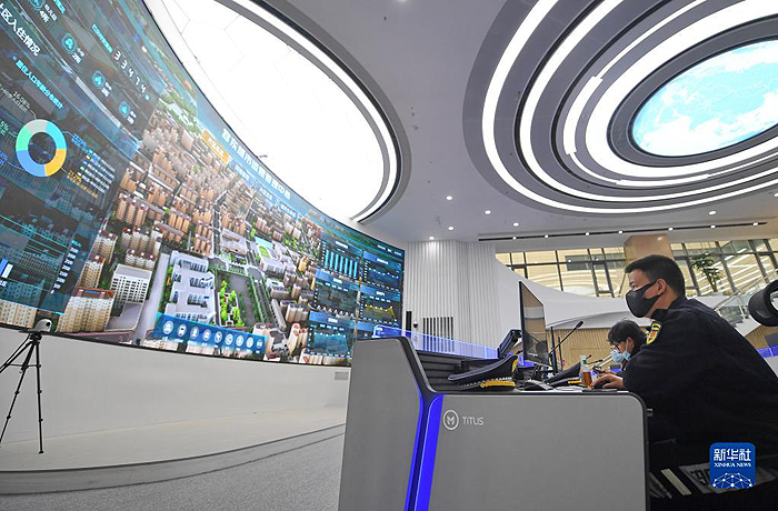 工作人員在雄安新區(qū)容東城市運(yùn)營管理中心監(jiān)管平臺工作(2022年3月29日攝)。新華社記者 朱旭東 攝