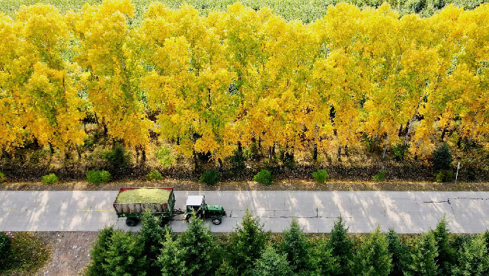 北大荒集團(tuán)北安分公司趙光農(nóng)場有限公司的青貯玉米已經(jīng)迎來收獲,拉開了當(dāng)?shù)睾堤锸斋@序幕。一輛輛收獲機(jī)車前進(jìn)著將整片玉米“吃”進(jìn)去,連秸稈帶玉米棒一起粉碎后再“吐”出來,旁邊的運(yùn)輸車輛緊緊跟隨,一車裝滿后,新鮮的青貯玉米被直接運(yùn)往養(yǎng)殖場入窖壓實(shí)儲(chǔ)藏。