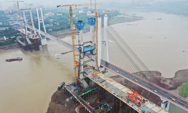 重慶軌道交通18號(hào)線李家沱長(zhǎng)江復(fù)線橋南岸主塔封頂