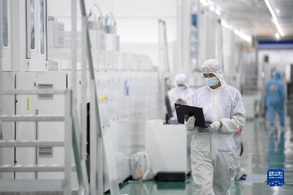 科研人員在秦創(chuàng)原光伏創(chuàng)新中心——隆基中央研究院中試線上工作(2022年9月23日攝)。新華社記者 李一博 攝