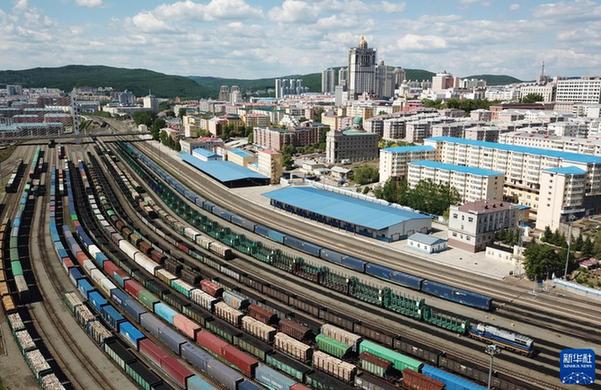 這是2022年6月8日拍攝的中國(黑龍江)自由貿(mào)易試驗(yàn)區(qū)綏芬河片區(qū)的局部(無人機(jī)照片)。新華社記者 王建威 攝
