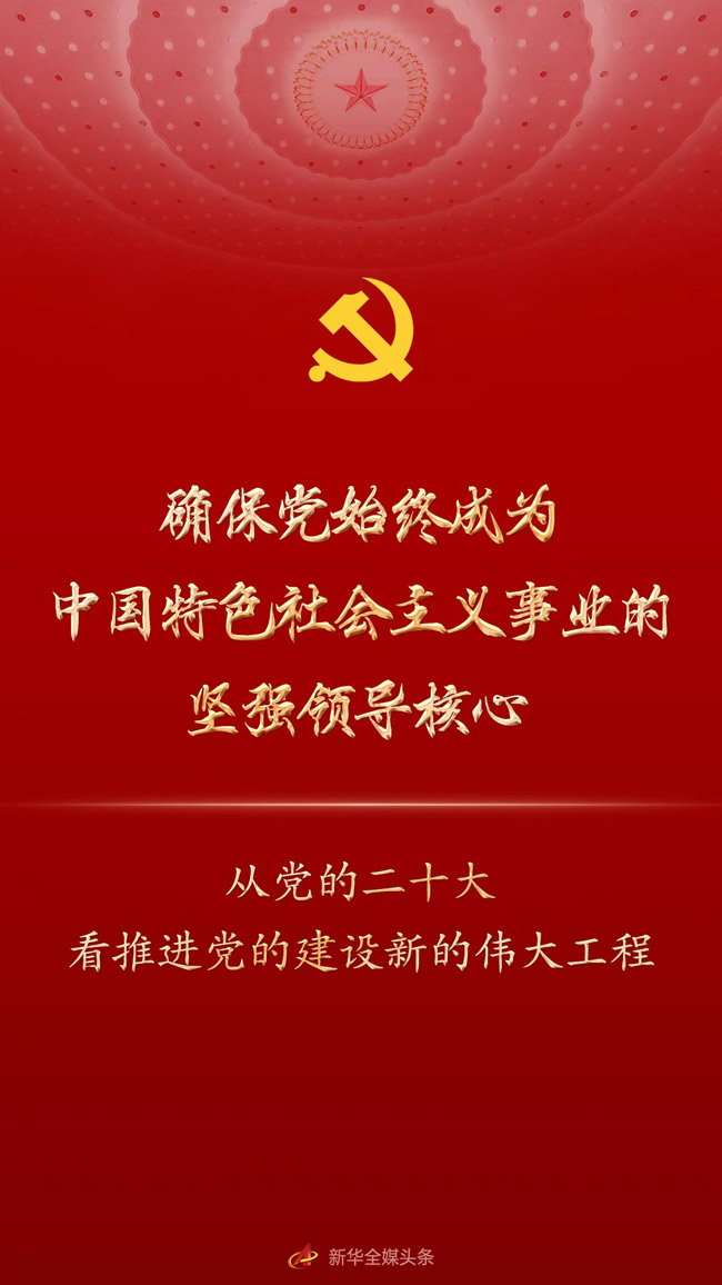新華社北京10月21日電 題:確保黨始終成為中國(guó)特色社會(huì)主義事業(yè)的堅(jiān)強(qiáng)領(lǐng)導(dǎo)核心——從黨的二十大看推進(jìn)黨的建設(shè)新的偉大工程