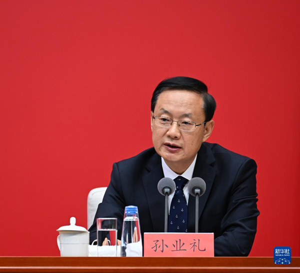 10月24日上午,中共中央舉行新聞發(fā)布會,介紹解讀黨的二十大報告。中央政法委秘書長陳一新,中央政策研究室主任江金權(quán),中央改革辦分管日常工作的副主任、國家發(fā)展改革委副主任穆虹,中央紀委國家監(jiān)委宣傳部部長王建新,中央辦公廳副主任兼調(diào)研室主任唐方裕,中央宣傳部副部長孫業(yè)禮等有關(guān)方面負責人解讀黨的二十大報告并回答記者關(guān)心的問題。這是孫業(yè)禮在新聞發(fā)布會上。新華社記者 金良快 攝