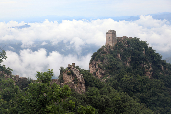 8月9日拍攝的金山嶺長(zhǎng)城云海景觀。