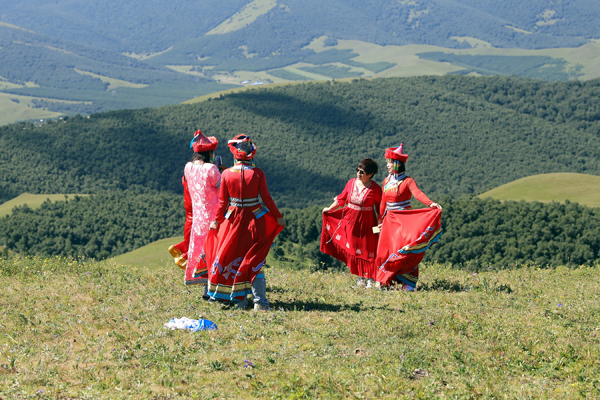 8月5日,游客在河北省承德市豐寧滿族自治縣千松壩森林公園景區(qū)休閑游玩。