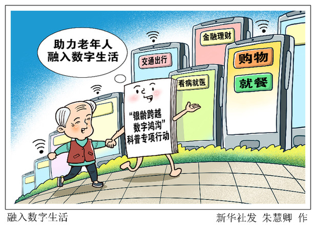 為積極應(yīng)對(duì)人口老齡化,中國(guó)科協(xié)、中國(guó)銀行、中國(guó)聯(lián)通日前聯(lián)合印發(fā)方案,共同開(kāi)展“銀齡跨越數(shù)字鴻溝”科普專(zhuān)項(xiàng)行動(dòng),滿足老年人對(duì)信息素養(yǎng)、數(shù)字技能和金融知識(shí)等方面的需求,切實(shí)解決他們?cè)诟哳l生活場(chǎng)景中智能應(yīng)用的現(xiàn)實(shí)困難,助力老年人走進(jìn)數(shù)字時(shí)代、享受智慧生活。新華社發(fā) 朱慧卿 作?