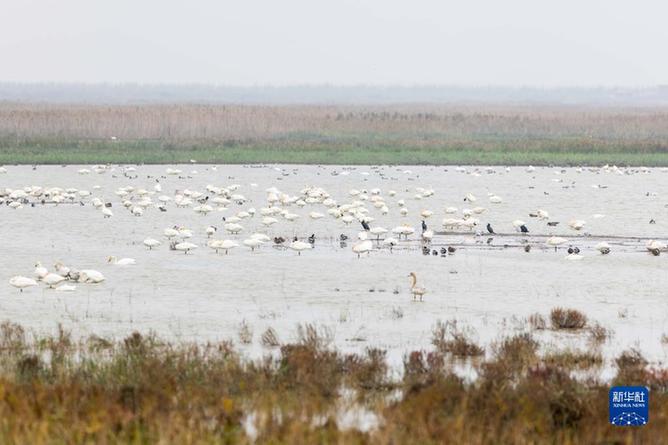 這是11月22日在上海崇明東灘鳥類國(guó)家級(jí)自然保護(hù)區(qū)拍攝的棲息的各種鳥類。新華社記者 王翔 攝