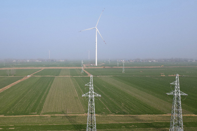 某地風(fēng)儲(chǔ)電站,與傳統(tǒng)的風(fēng)力發(fā)電站相比,這處電站配備了10兆瓦時(shí)的儲(chǔ)能設(shè)施,可以在發(fā)電高峰時(shí)將電能暫時(shí)儲(chǔ)存,在用電高峰時(shí)釋放。資料照片